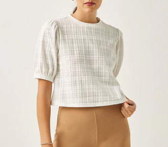 Add this simple and elegant top to your daily wear. The textured top features a crew neck and puff sleeves. Made from cotton blend fabric, this top is quite a pick.